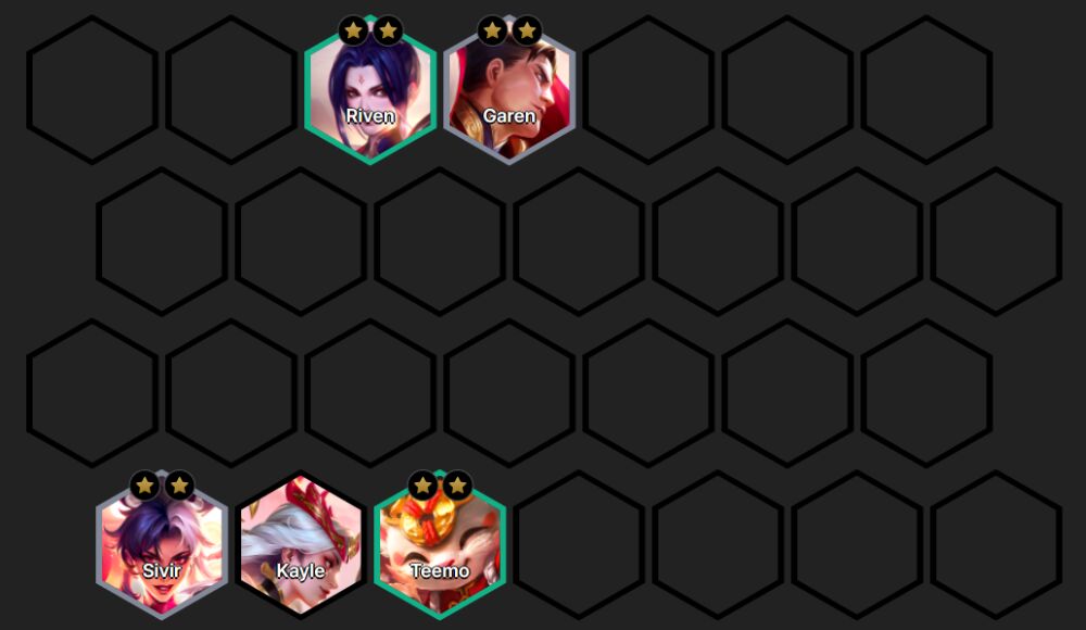 Start the game with losing streak to have priority in choosing equipment for the shopping round. Because you will need a lot of wooden bow pieces to optimize the formation. If pieces of defensive equipment fall out, you can optimize the defensive equipment on Garen or Riven to keep the best health.