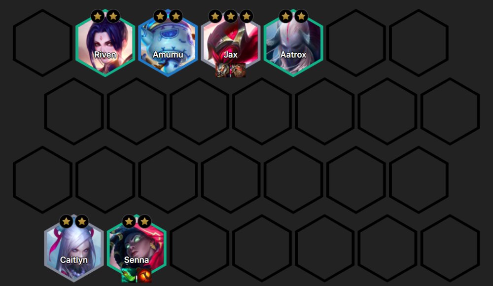 If you have the opportunity to upgrade all 3-gold generals to 2 stars, upgrade them all. However, main purpose will still be Jax and Senna 3 stars. After upgrading Jax to 3 stars, accumulate gold to level 8.