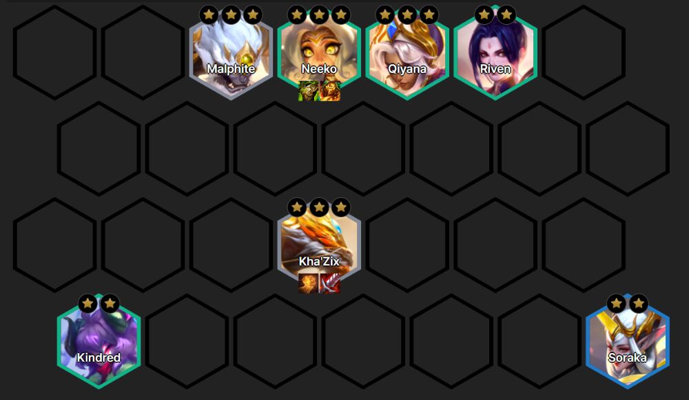 In this lineup, Kha'Zix will be main source of damage and he needs time to do as much damage as possible. However, limit of this lineup is There are a lot of 1-gold and 2-gold champions so you will need to upgrade them to 3 stars so they can withstand Kha'Zix long enough.