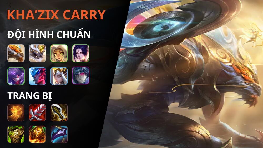 Start the game with Thien Cung generals to increase the component stats for Kha'Zix. If the round fights monsters, items that can be paired are dropped Hand of Justice or Blood sword Then use it for Kha'Zix to help him increase damage to "harvest" enemy pieces.
