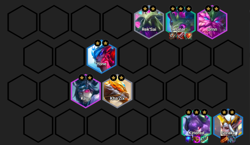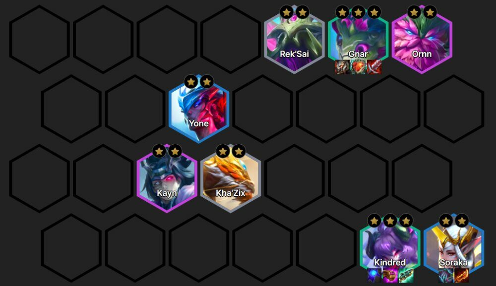 Rek'Sai, Kha'Zix, Kindred, Gnar, Soraka, Yone, Kayn, Ornn.