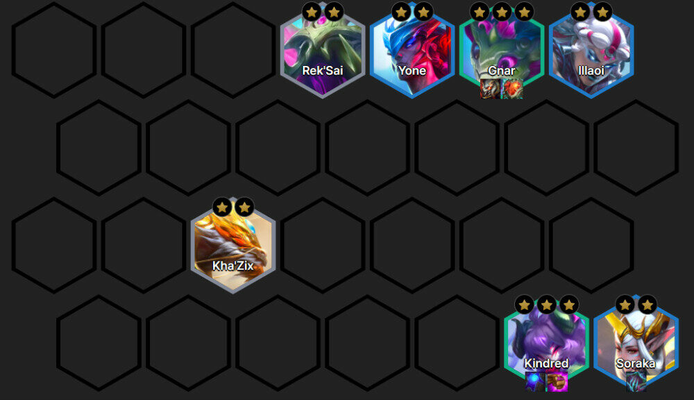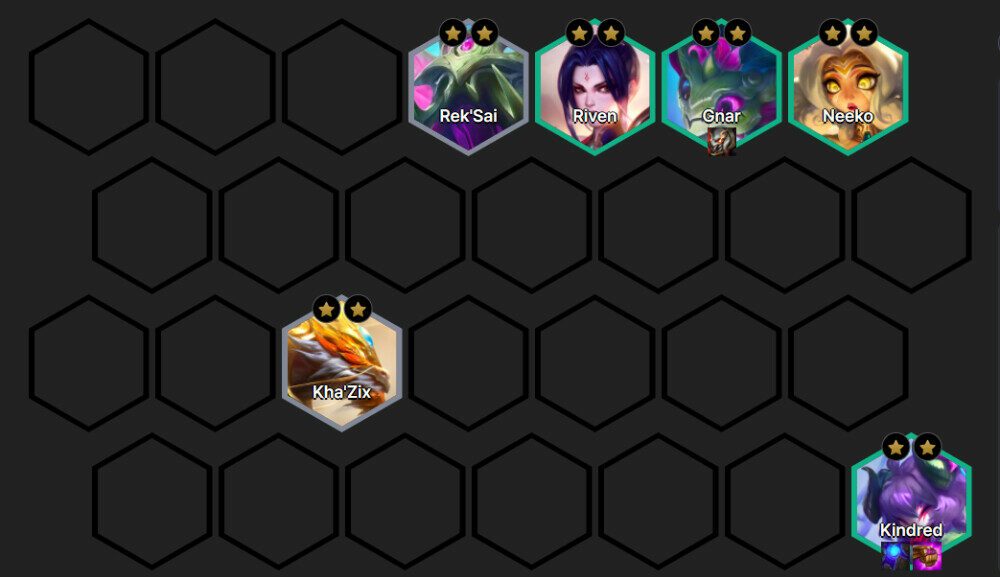 Continue to upgrade Kindred and Gnar to 2 stars stage 3-1. Using Riven and Neeko will also help add more defense to the squad.