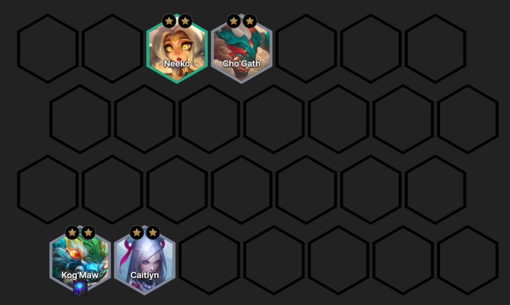 You will need to start the game with losing streak. Use 3 Myths including Neeko, Cho'Gath and Kog'Maw. Add Caitlyn to increase Sniper 2 for a little more damage.