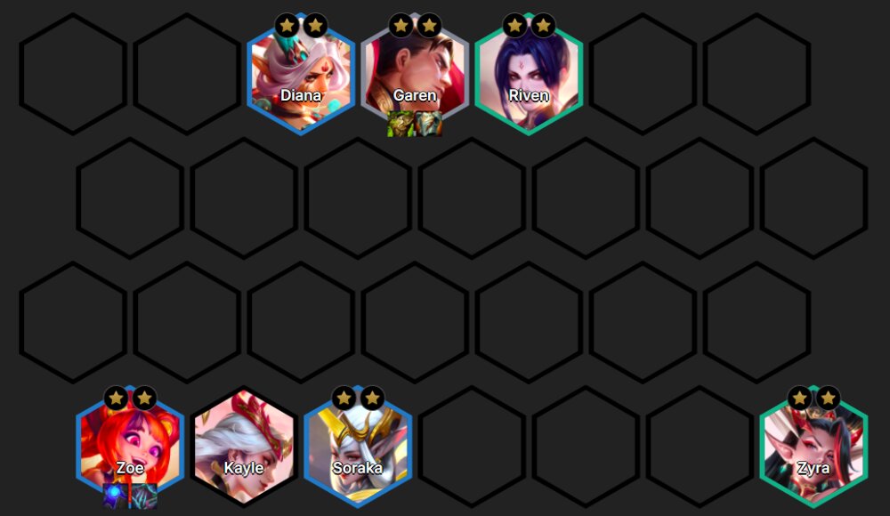 IN stage 3-1, after completing the shopping round upgrade level 6 for more opportunities to receive 3-gold champions like Diana, Soraka and Zoe. Prioritize defensive equipment for your tankers to increase defense.