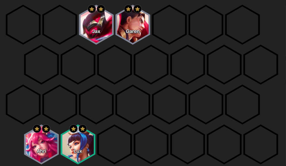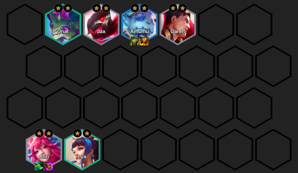 Start the game with losing streak to have priority in choosing equipment for the shopping round. Because you will need a lot of Wooden Bow pieces and Oversized Sticks to optimize your squad. If pieces of defensive equipment fall out, you can optimize the defensive equipment on Garen or Jax to keep the best health.