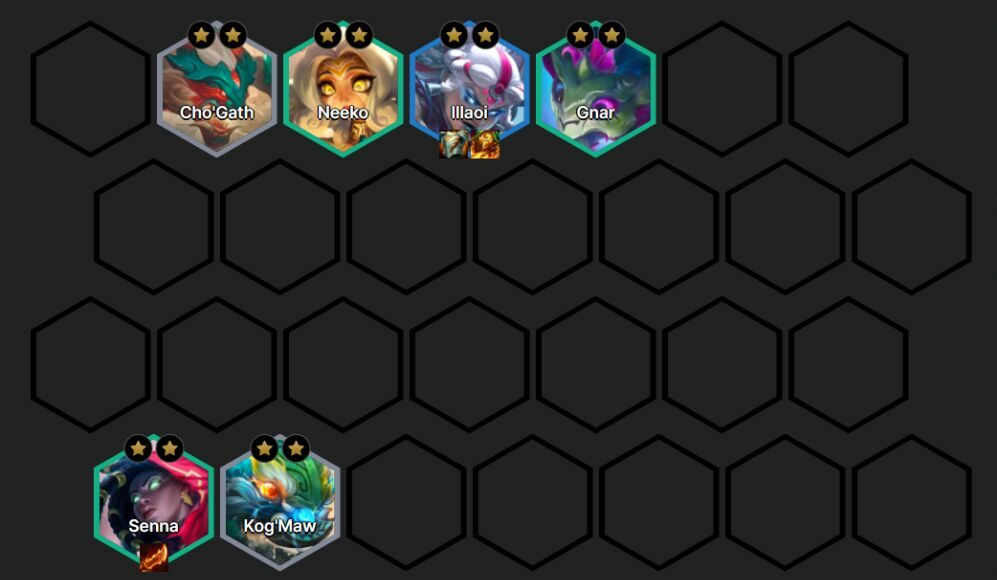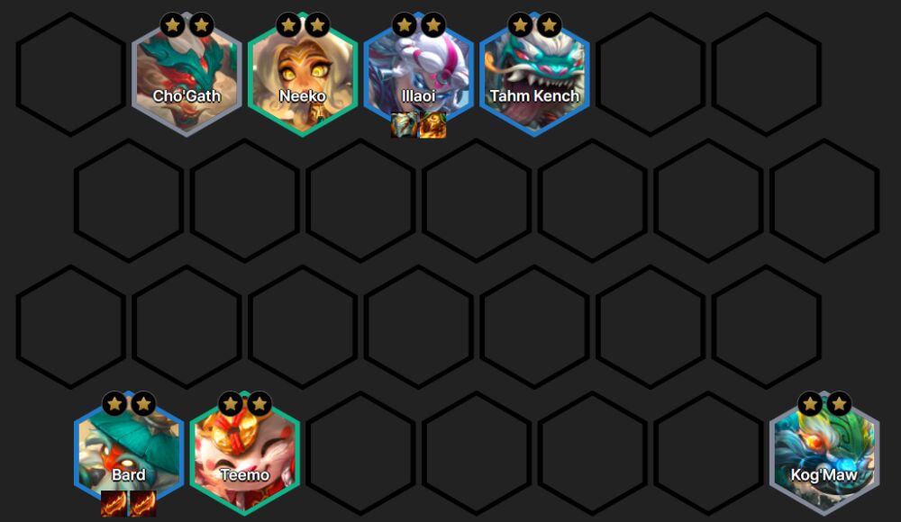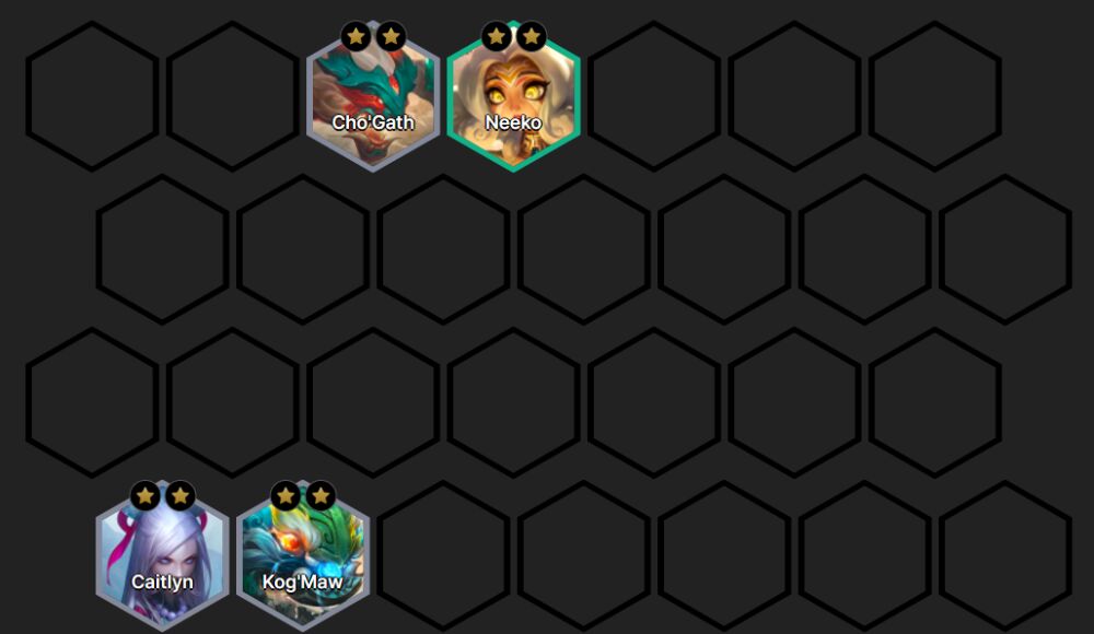 Start the game with losing streak to have priority in choosing equipment for the shopping round. Because you will need a lot of wooden bow pieces to optimize the formation. If defensive equipment pieces drop, you can optimize the defense equipment on Cho'Gath or Neeko to keep the best health.