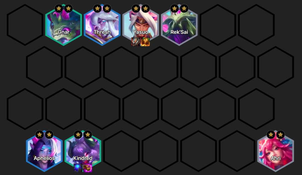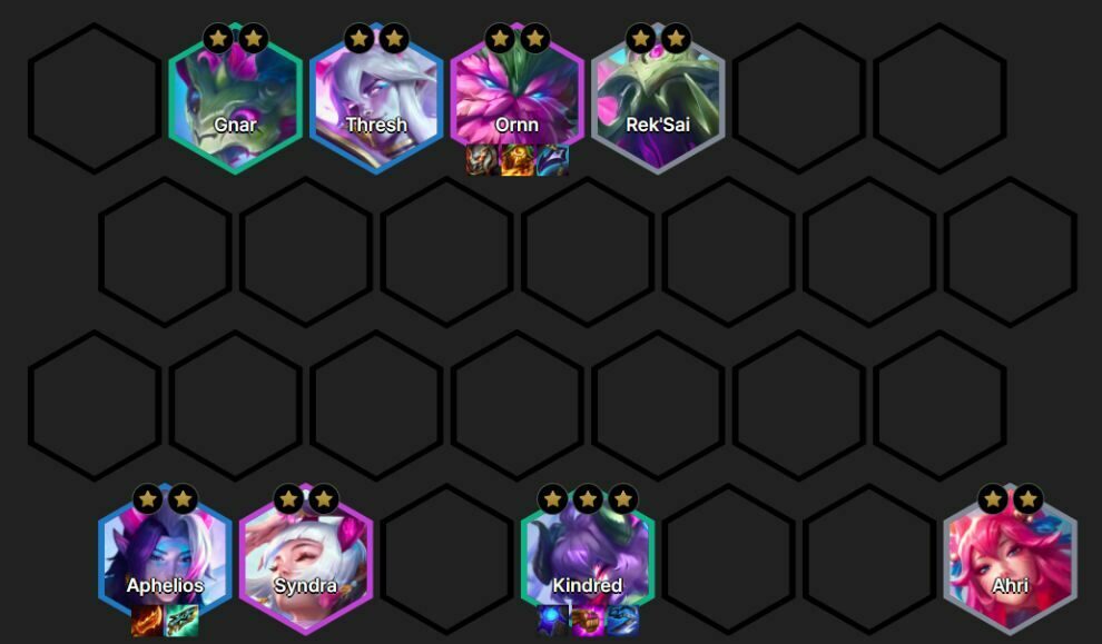 Upline Ornn and Thresh will combine to become a sturdy shield for your backline champions to deal damage. Because of this factor, Aphelios and Kindred in the backline will become a huge source of damage, destroy all layers of armor of the enemy.