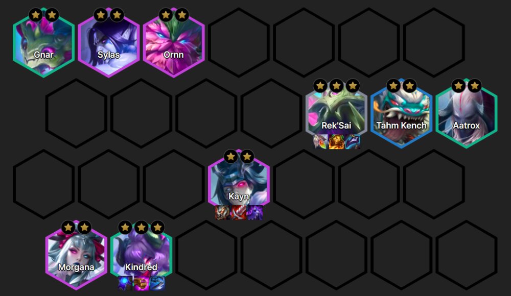 Rek'Sai, Aatrox, Gnar, Kindred, Tahm Kench, Kayn, Morgana, Sylas.