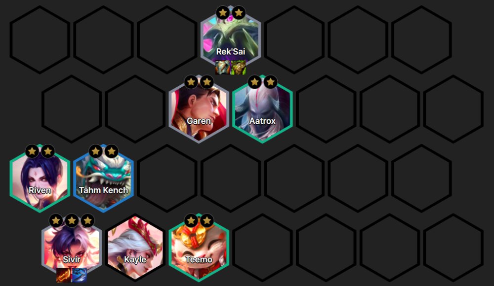 Start the game with losing streak to have priority in choosing equipment for the shopping round. Because you will need a lot of wooden bow pieces to optimize the formation. If pieces of defensive equipment fall out, you can optimize Rek'Sai's defensive equipment to keep the best health.