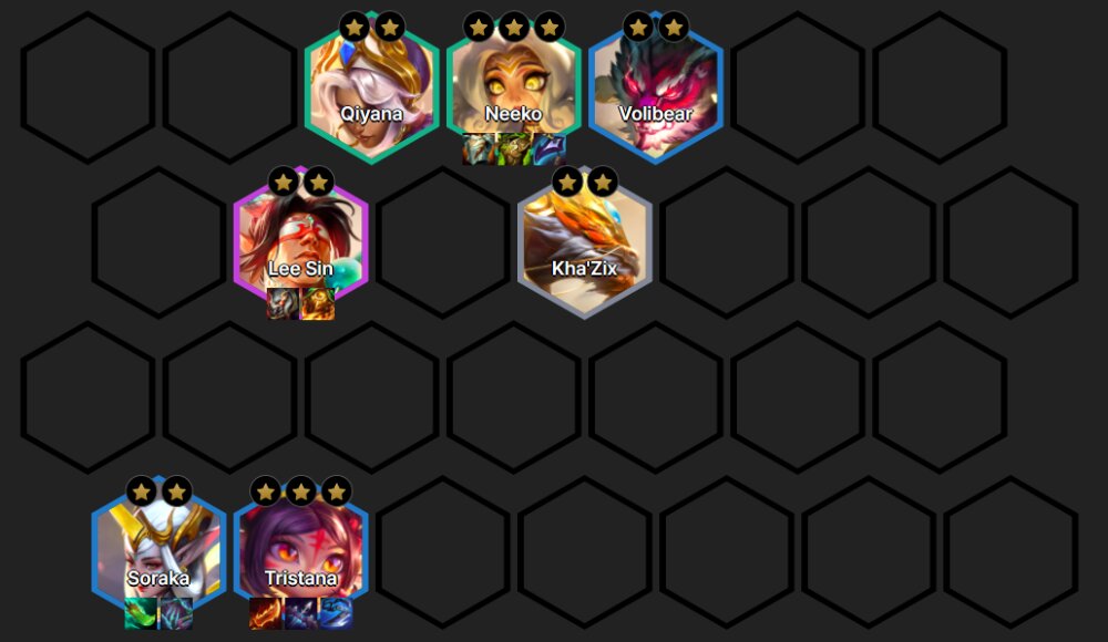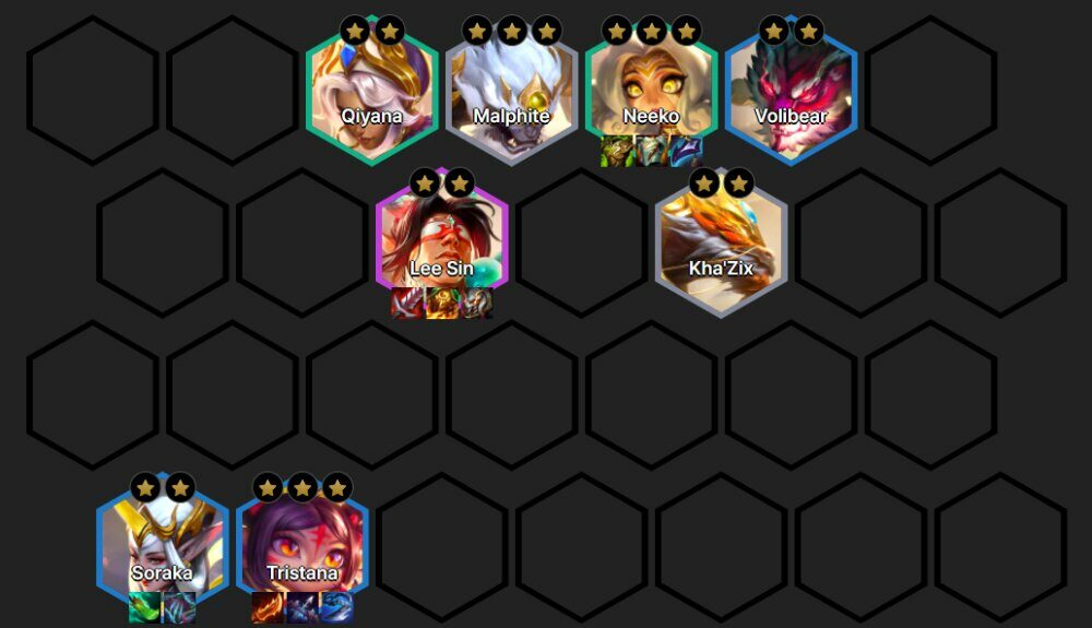 Kha'Zix, Malphite, Neeko, Qiyana, Soraka, Tristana, Volibear, Lee Sin.