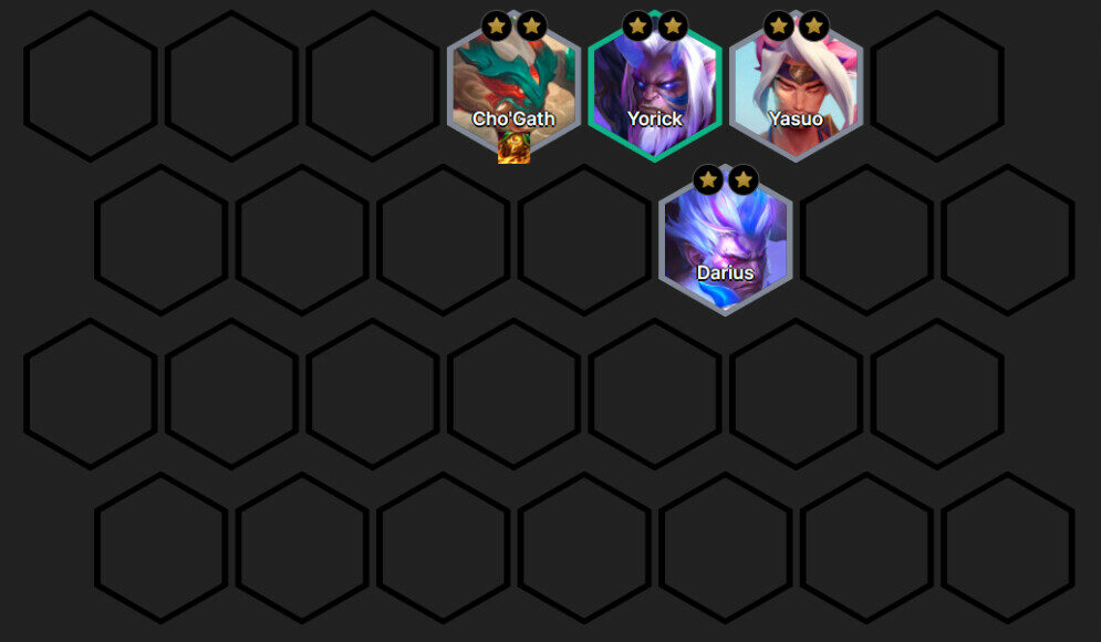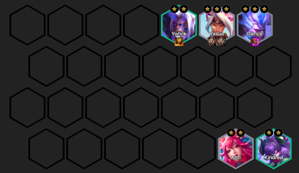Start the game with long losing streak to have priority in choosing equipment for the shopping round. Try to choose multiple Wooden Bow components to use on Yasuo in the later stages. If the Oversized Stick equipment pieces drop, combine them with Darius. This will be the champion that deals damage alongside the 3-star Yasuo in the late game.