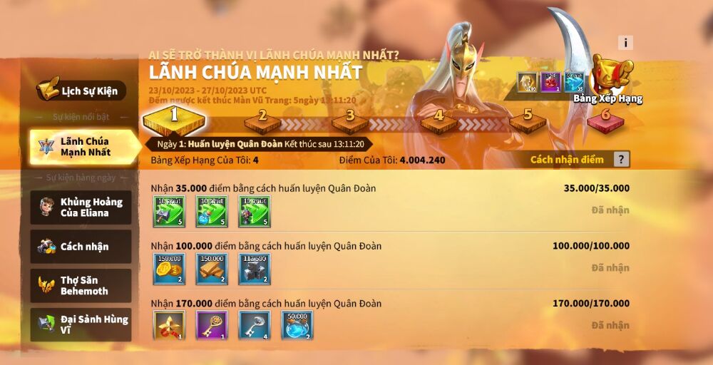 Strongest Lord Event is one of the most important events in Call of Dragons. This is an opportunity for players to receive new legendary heroes, improve their squad's strength and compete with other gamers.