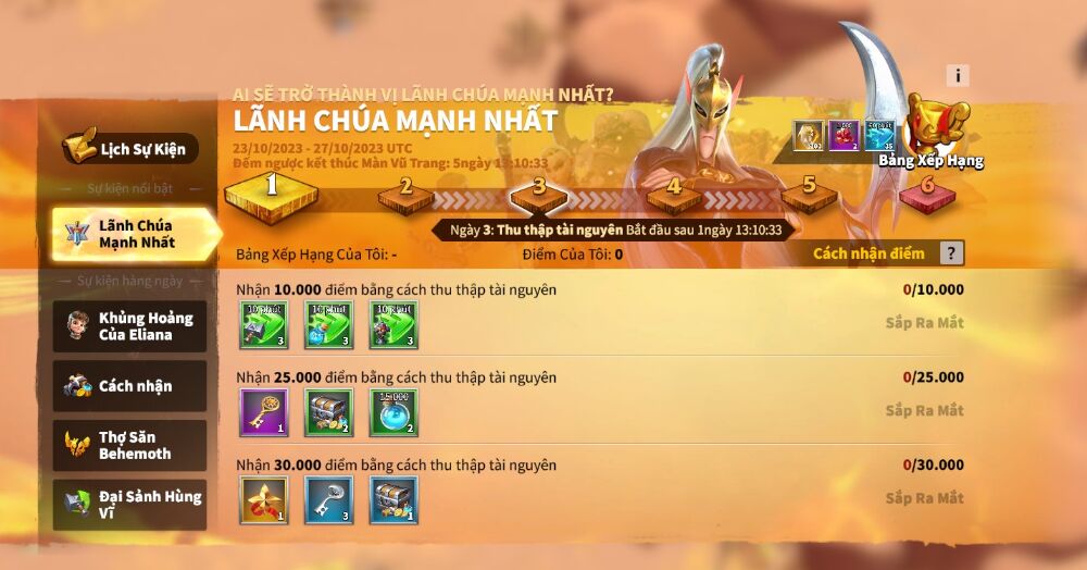 Tips: You should time it before the new day starts, then send your army to collect resources a certain amount of time before the new day resets. When a new day passes, all resources will be counted towards Strongest Lord Event points.