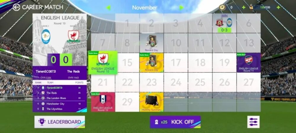 In career mode, you can choose between Career in Leagues English Championship and Career in Prize Spanish National Championship. This is an Offline Tournament Event featuring Premium League Clubs of both. In which the player must work during a scheduled season.