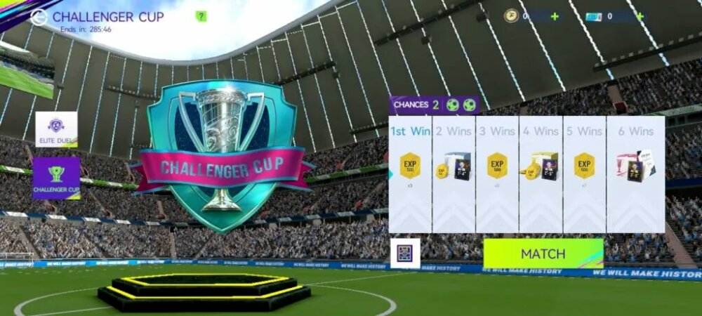 To play in the Challenger Cup Event, you must have vee. It is only available for a limited time. Users can challenge some of the most famous clubs in the world here. You will receive a Challenge Box after every win. But don't worry, you'll get a free ticket to your first Challenger Cup match.