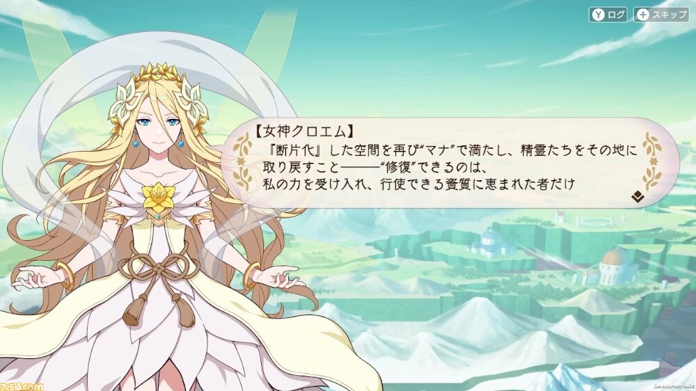 The goddess elects one "restorer" has the right to repair the land that has been cut off from the face of the earth. We will be sending them to different areas to try to put an end to this. A person chosen to be such a restorer is you the chosen one. The main character will adventure around with his friends to save the world.