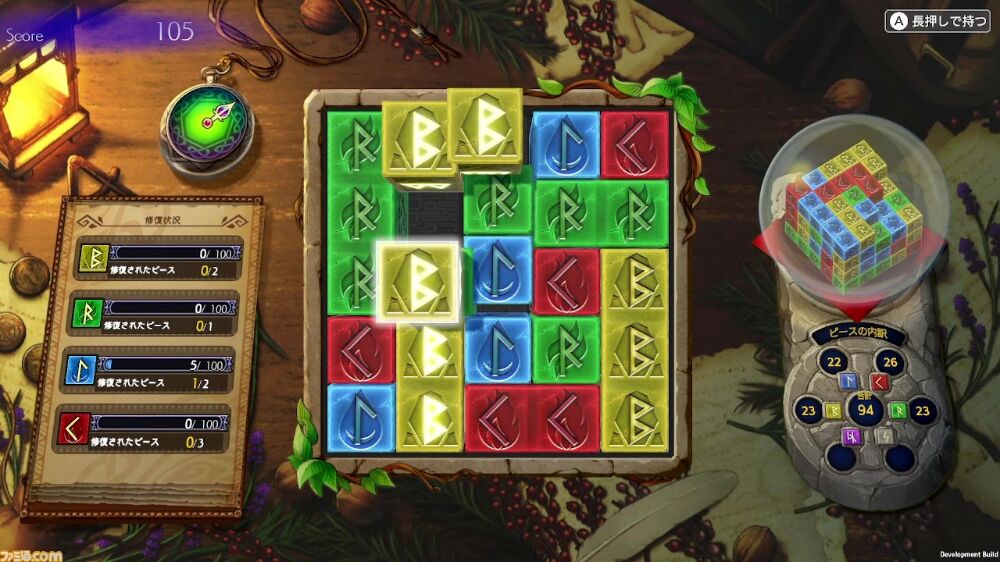 Once you reach the divided land, it's time to show off your skills as a restorer. Move a puzzle piece, two or more pieces of the same color to make the pieces disappear. If you clear a certain number of pieces, the land will be repaired and you will also receive items.