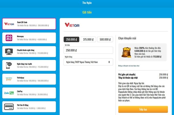- Finally, the Happyluke deposit method using scratch cards and vouchers is also a secure option for those who want to keep their personal information. The codes on the scratch card will be entered to complete the deposit process. In this way, Happyluke offers a variety of payment methods, meeting a variety of players' needs.