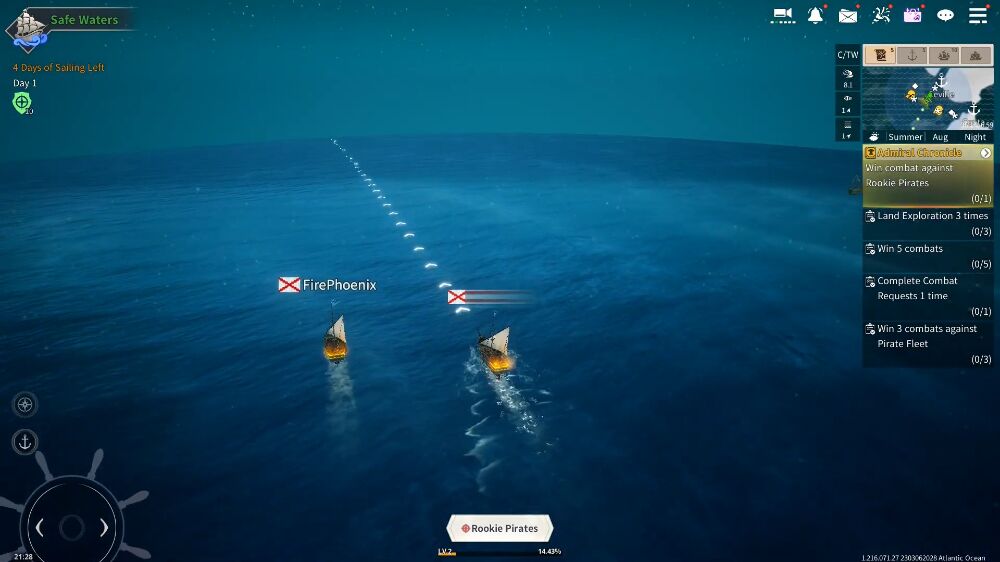 PK content where players challenge other players while sailing. When entering the battle, each player will fight a AI copied the information of the other fleet.