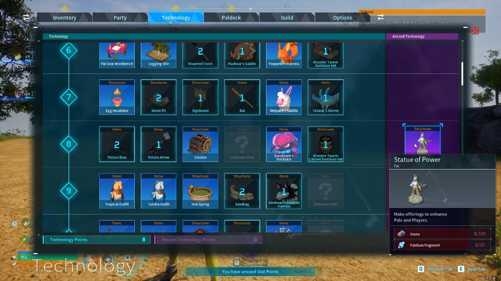 Not enough, Palworld also offers manufacturing formula to create more powerful items, and to unlock them, you need to invest Tech Points in the desired recipes.