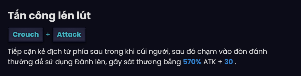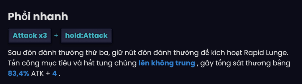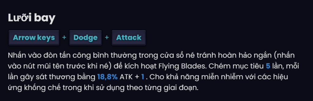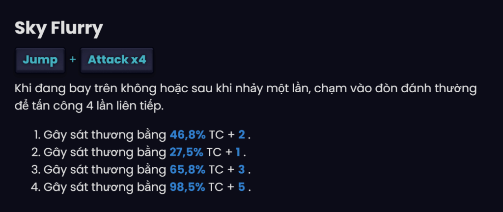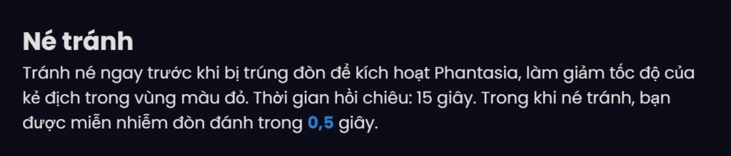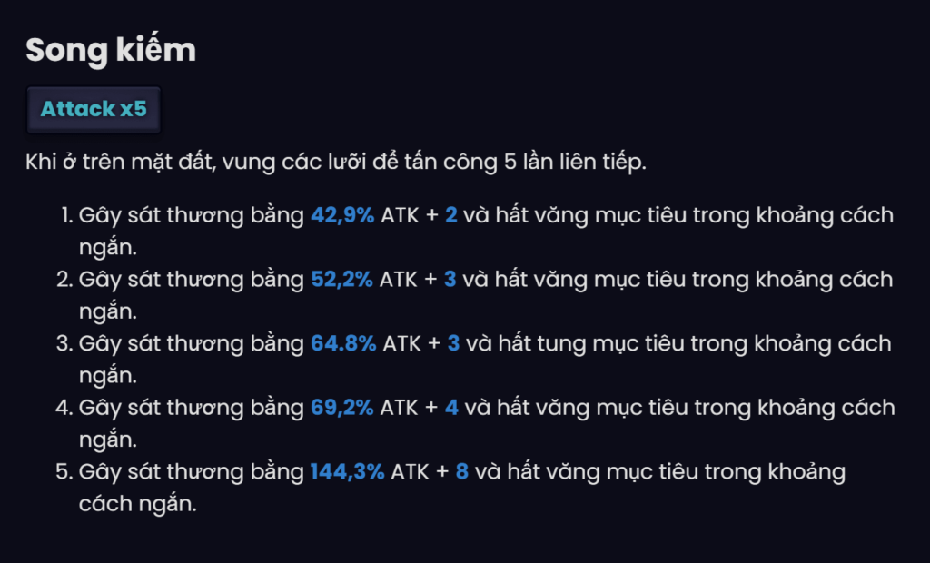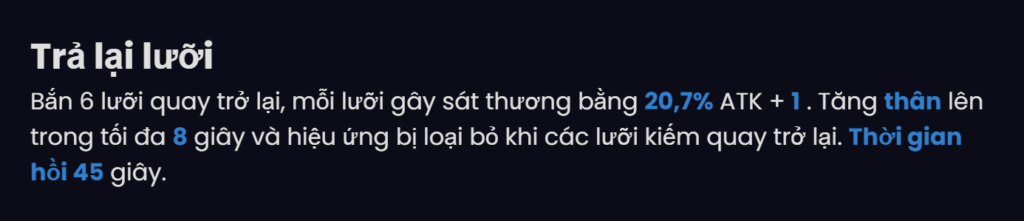 | 5 ★ | Activate Reverse Strike for 100% crit . chance in 4 next second and increase 50% crit damage. Cooldown time: 10 second. |