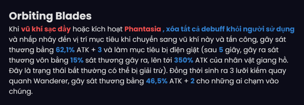 When the weapon is fully charged, the next attack will paralyze target in 1 seconds and electrify them for 6 second. Negates all effects and deals damage equal to 144% ATK. Targets cannot receive any effects in 6 seconds next.