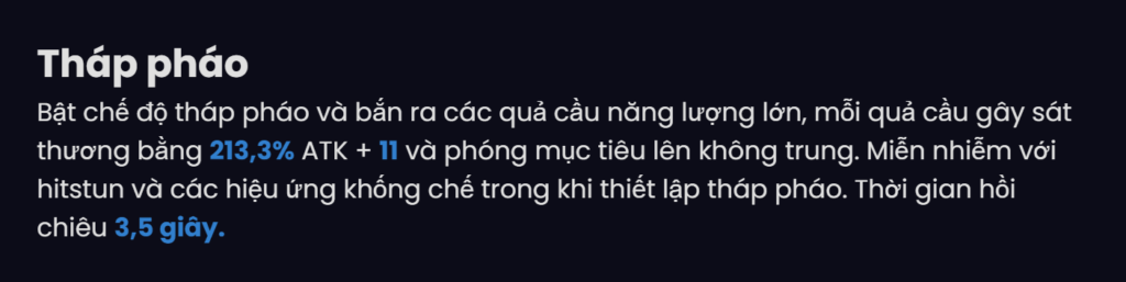 | 5 ★ | Cooldown reduction of basic attacks while in turret down mode 2 second. |