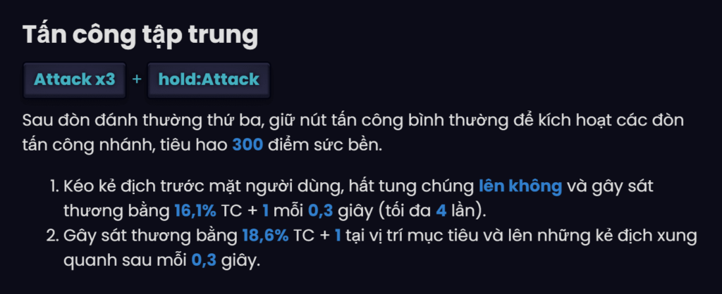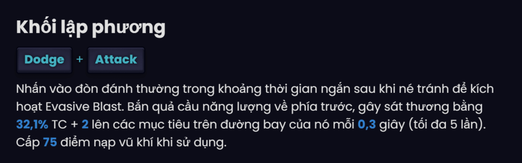 When the weapon is fully charged, the next attack will paralyze target in 1 seconds and electrify them for 6 second. Negates all effects and deals damage equal to 106% ATC. Targets cannot receive any effects in 6 next second.