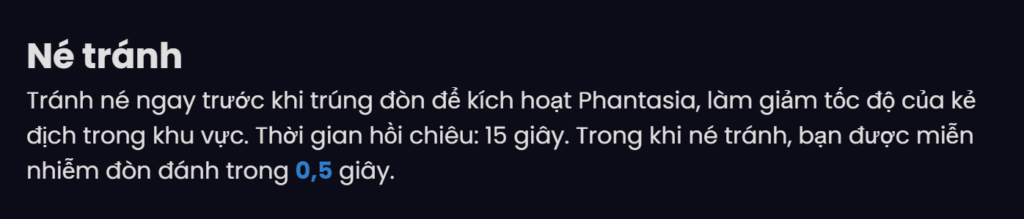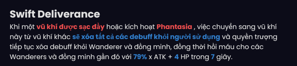 | 1 ★ | Heal all allies in range 10 meters with 100% ATK after using the Dodge skill. |