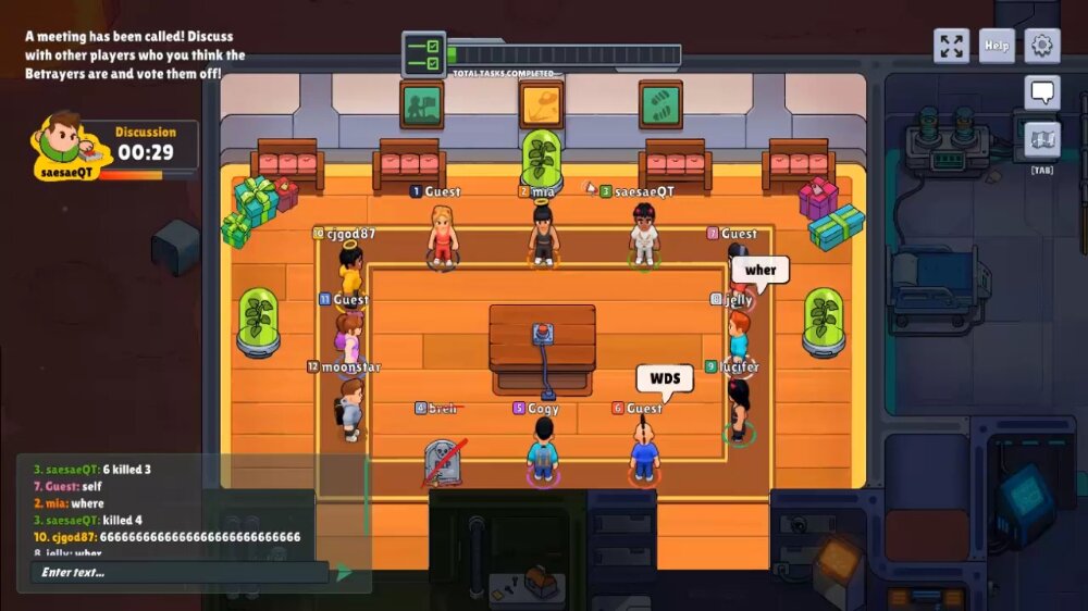 Each player has the option held a meeting The only one in which the group discusses identities and votes to identify impostors.