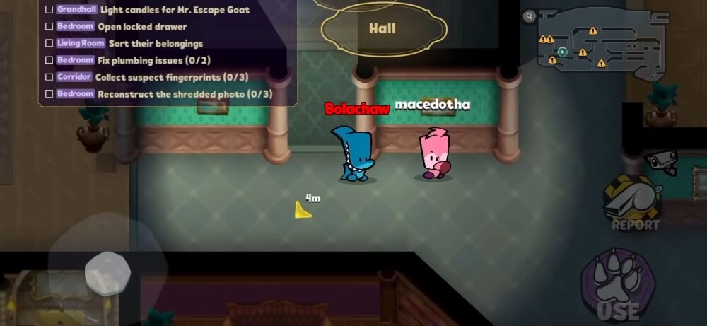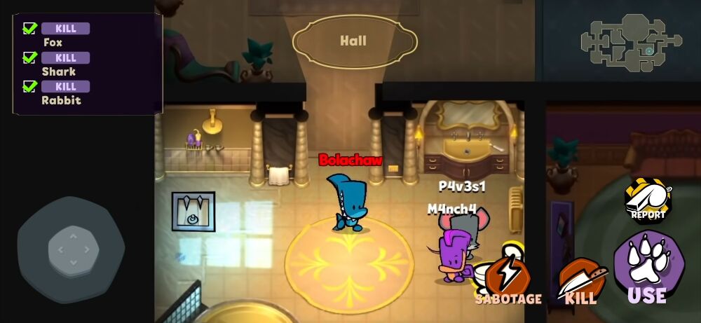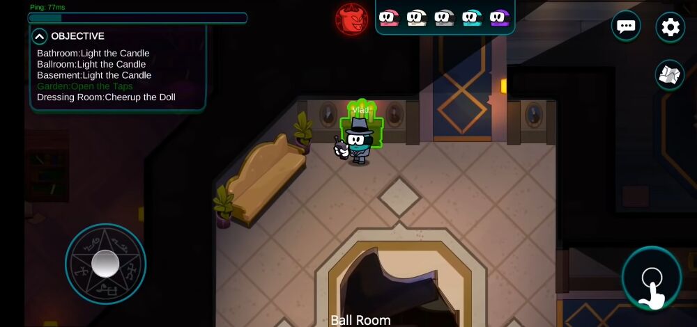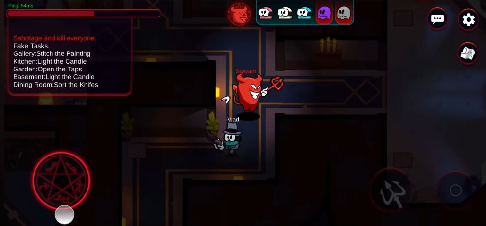 The game is played from panoramic view and has beautiful 3D graphics. You can move your character with the virtual D-pad to explore the mansion and complete quests. If you are an impostor, you will try to kill others without being detected.