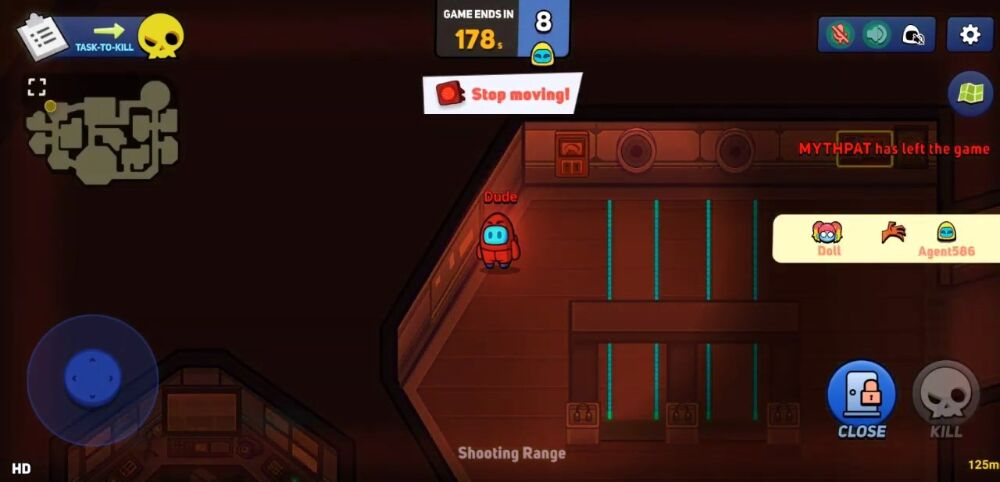 If the player finds the killer, they can report him to other players. If the other players agree, the killer is eliminated from the game. If the killer can kill all the others undetected, he wins.