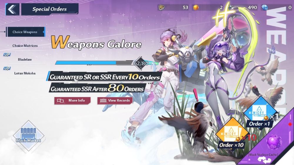 Matrix banners provide unlimited matrices which you can equip your weapon with every spin. It also has a Pity system that guarantees a SSR matrix within 40 spins. Similar to Weapon Banners, the Pity system will not reset if you have an SSR between 40 spins.