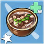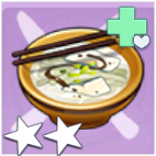 |  Seaweed and Egg Soup ★ ☆☆ | • Laver x2 • Poultry Egg x1 | Reproduce 7 Feeling of fullness. Use it to instantly restore (12% + 3.300) HP to Humanity. |