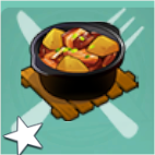 |  Meat and Potato Stew ★ ☆☆ | • Potato x1 • Game Meat x1 | Reproduces 14 feelings of satiety. |