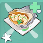 |  Steamed Conch ★ ☆☆ | • Conch x2 • Lettuce x1 | Reproduce 7 Feeling of fullness. Use it to instantly restore (12% + 3.300) HP to Humanity. |