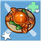 |  Steamed Crab ★ ☆☆ | • Portunid x2 • Lettuce x2 | Reproduces 10 feelings of satiety. Use it to instantly restore (15% + 20.000) HP to Humanity. |