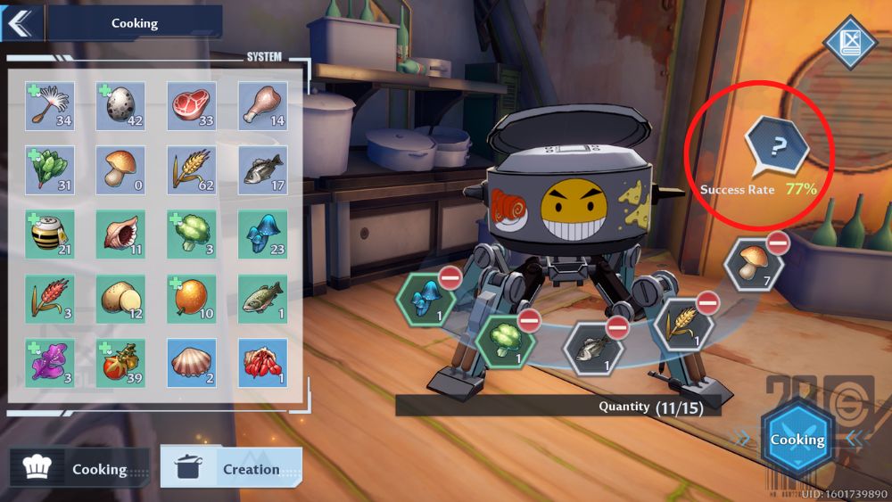 You can achieve a high success rate by added lower level components required for the recipe. For example, you can order more Poultry Eggs or Homi Seeds to increase your chances of getting Tomato Spaghetti and Scrambled Eggs via the option Creation.