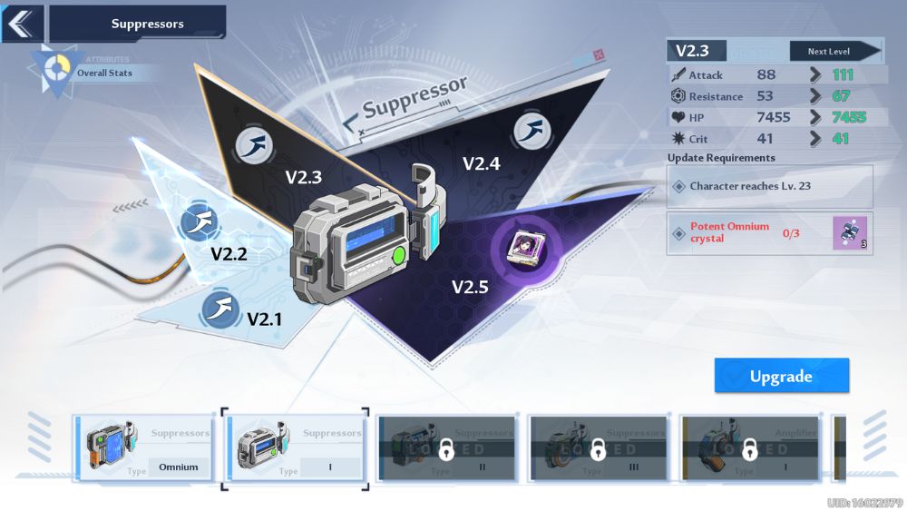 You can get a suppressor upgrade material called Potent Omnium Crystals by completing the conquest of Ruin. When you upgrade your Suppressor, you can increase your attack power, elemental resistance, HP, and critical hit.