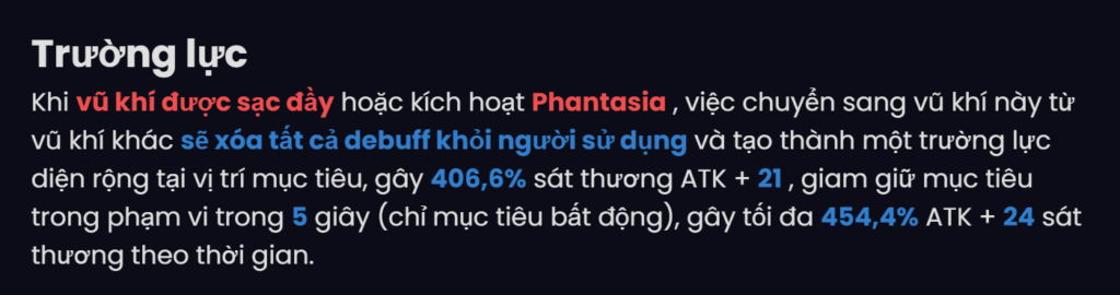 When the weapon is fully charged, the next attack will paralyze target in 1 seconds and electrify them for 6 second. Negates all effects and deals damage equal to 144% ATK. Targets cannot receive any effects in 6 next second.