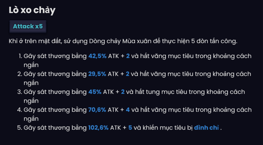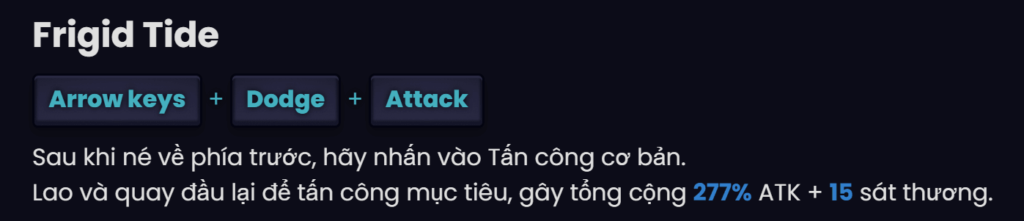 | 1 ★ | While Frost Resonance is active, drop any weapon skill in total 5 times to clear the cooldowns of all weapon skills, also double [Circulation] and [Reflection] damage in 25 second. |