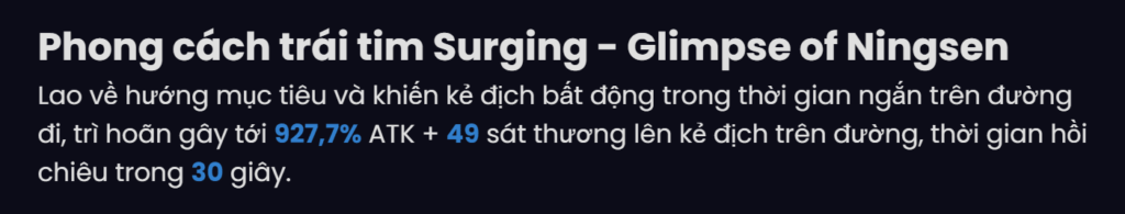 | 3 ★ | Flowing Heart: Sword Shadow's [Surge] damage tgrow up 900% ATK by Frost. Silent Flow: Sword Shadow [Surge]'s cooldown reduced 5 second. |