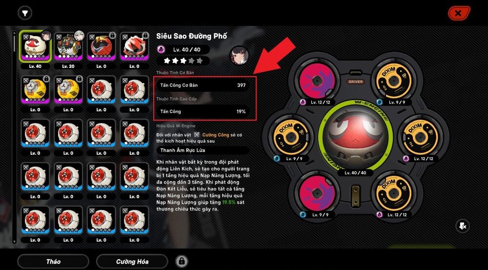 Trang bị W-Engine còn cho phép nhân vật sử dụng các buff trong trận chiến. Mỗi W-Engine có hiệu ứng riêng, vì vậy hãy chắc chắn chọn những hiệu ứng phù hợp với lối chơi của bạn.