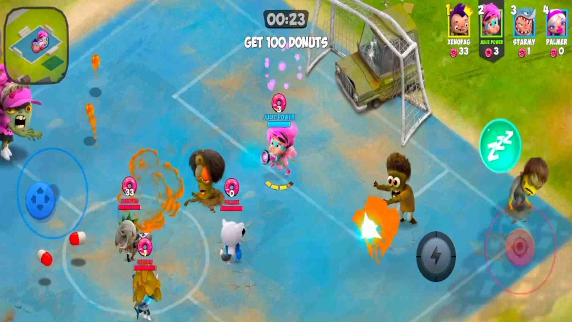 Hãy nhớ, bạn không phải là người duy nhất sống sót. Những người chơi khác cũng muốn có được donut như bạn và họ sẵn sàng sử dụng những đặc quyền để đối đầu với bạn trong quá trình tiêu diệt zombie. Nhớ quan sát và cẩn thận trước mọi đối thủ của bạn. Game phù hợp với người chơi yêu thích dòng game moba bắn súng.