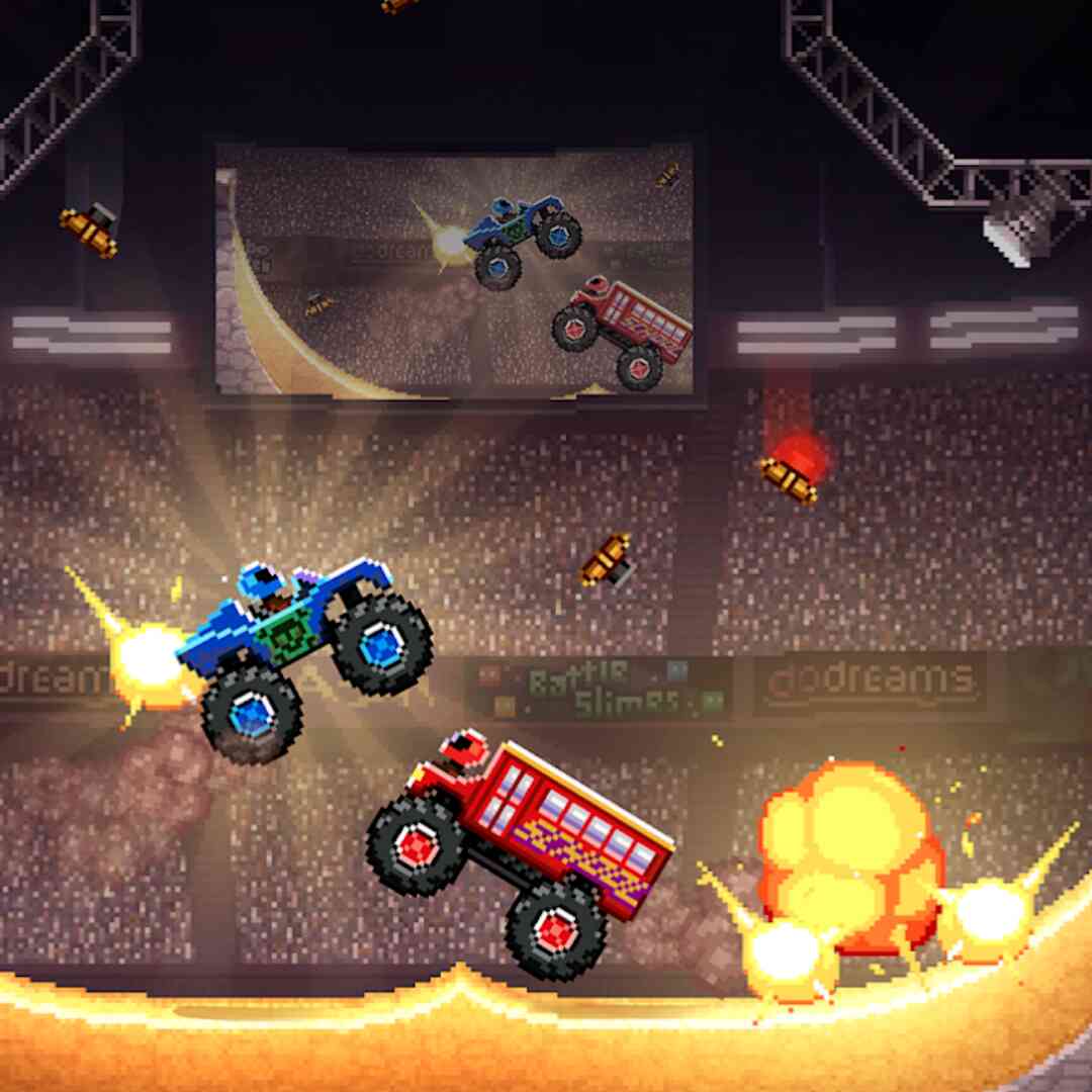 Những trận chiến sẽ diễn ra trong đấu trường kín chứa đầy các yếu tố tương tác thú vị. Đường dốc và đường vòng sẽ là 2 cung đường phổ biến nhất. Ngoài ra còn có những chiếc bập bênh khổng lồ, UFO cố gắng bắt cóc bạn và mìn được gài dọc đường sẽ nổ nếu vô tình bạn chạm phải chúng. Nếu yêu thích dòng game đua xe bắn súng thì Drive Ahead! là một trải nghiệm thú vị dành cho bạn.