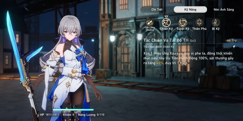 | Khi thi triển Chiến Kỹ, có 50% xác suất cố định hồi 1 điểm Chiến Kỹ, hiệu ứng này có thời gian chờ kích hoạt là 1 hiệp. | |