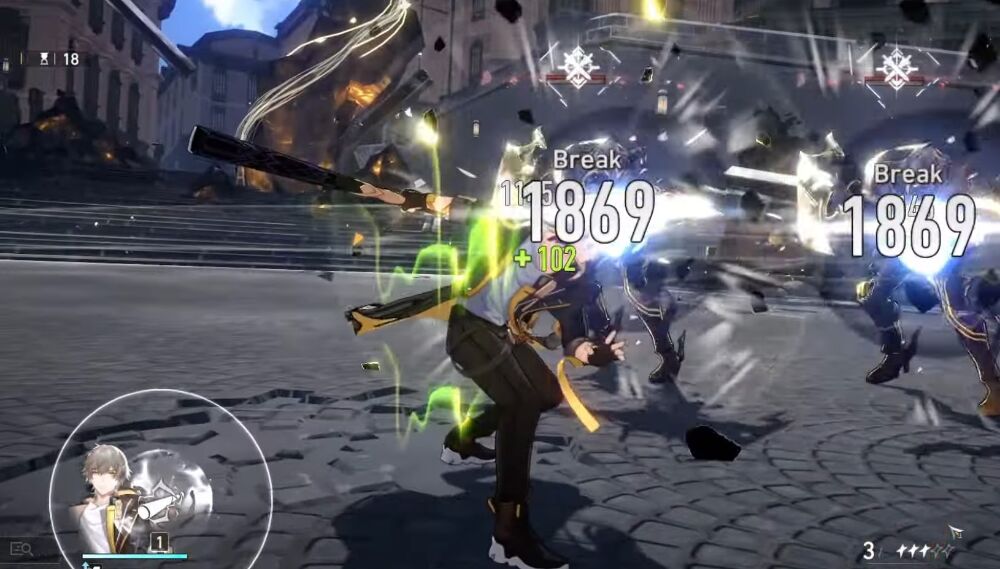 Sau khi nhận được buff tăng tấn công 44% từ việc gây trạng thái Phá điểm yếu cho kẻ địch, hãy tiếp tục bằng Tuyệt Kỹ của Nhà Khai Phá Vật Lý để gây ra một lượng lớn sát thương Vật lý.