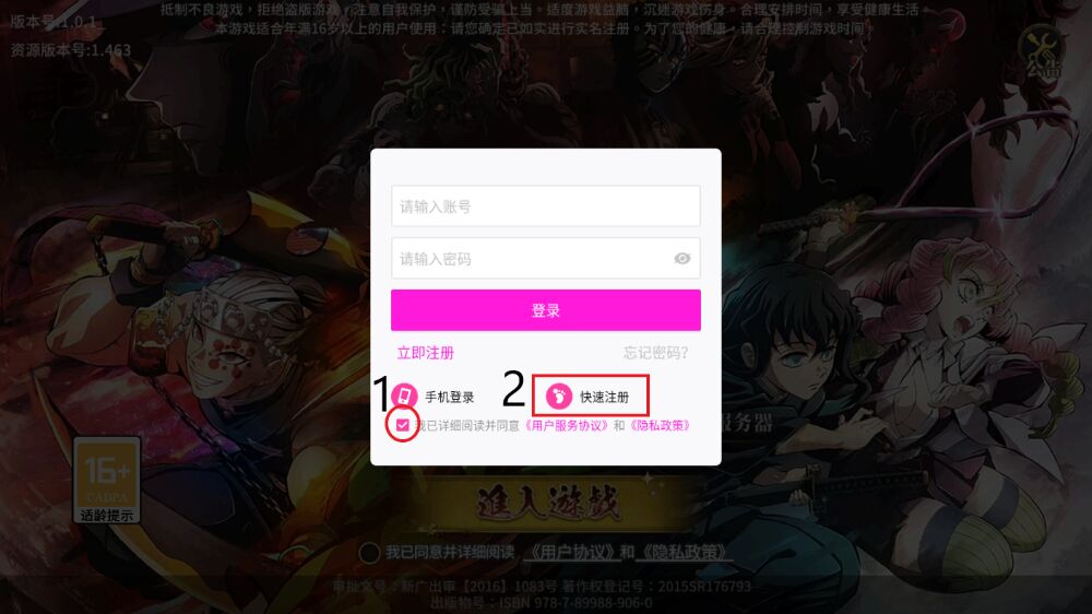 Sau khi cài đặt thành công Demon Slayer Mobile. Hãy khởi chạy trò chơi trên thiết bị của bạn. Làm theo các bước sau để tạo tài khoản và đăng nhập trò chơi.