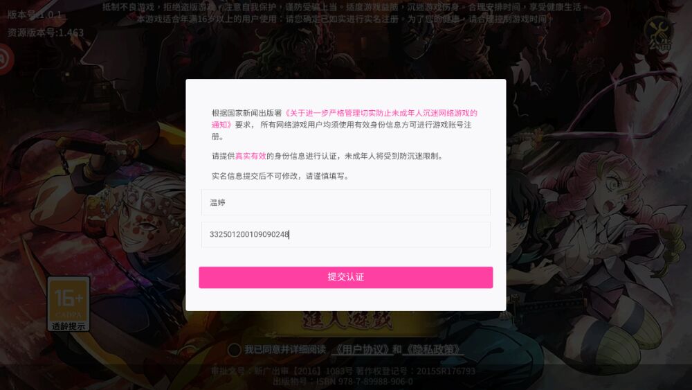 Bước 7: Bây giờ, trò chơi sẽ yêu cầu bạn phải điền họ tên và căn cước công dân. Dòng đầu tiên chính là họ tên, dòng thứ hai là số căn cước công dân. Lưu ý, bạn không thể sử dụng thông tin của bạn, chúng tôi sẽ cung cấp cho bạn họ tên và số căn cước công dân của Trung Quốc để bạn vượt qua bước này.