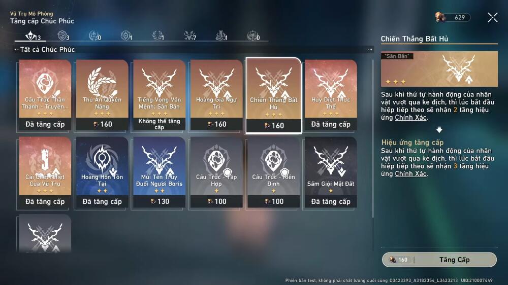Sau khi đánh bại kẻ thù, bạn có thể chọn một Chúc phúc từ 1 Sao đến 5 Sao tùy thuộc vào mức độ khó khăn của thử thách đối với bạn. Bạn cũng có thể tăng cấp Chúc phúc khi gặp Herta trong khu vực nghỉ ngơi!